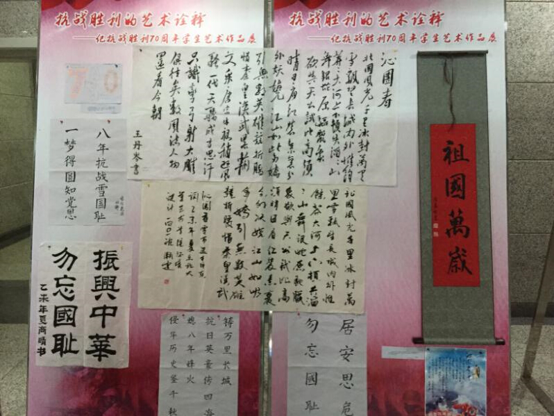 澳门六合彩资料大全 正式成立后,很快启动高校思想政治理论课教学改革工作,力争大学生思想政治教育工作取得实效,为学院创建东北乃至全国马克思主义教育宣传阵地助力。今年国家将隆重纪念中国人民抗日战争暨世界人民反法西斯战争胜利70周年,引起海内外高度关注,学院紧紧把握这一重要契机,依托“中国近现代史纲要”课教育教学,在部分艺术专业的大一学生中举办艺术作品展,引导和鼓励学生们用自己的画笔、颜料来诠释抗战胜利。随后,学院在征集的作品中精选20多幅,制作成6块展板,放在南湖校区综合楼一楼大厅展出。